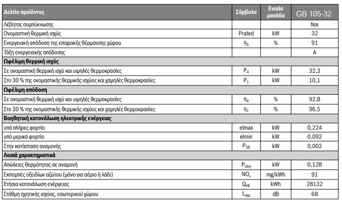 Με εποχιακό βαθμό απόδοσης βάσει ΕrP 91% και βαθμό απόδοσης καύσης 103,4%, ο Logano plus GB105 επιτυγχάνει υψηλότερη απόδοση από λέβητες πετρελαίου χωρίς τεχνολογία συμπύκνωσης. Επίσης, καταναλώνει σημαντικά λιγότερο καύσιμο φέροντας πιστοποίηση ενεργειακής κλάσης Α. Χάρη στις μικρές διαστάσεις του και το χαμηλό του βάρος μπορεί να εγκατασταθεί οπουδήποτε και λειτουργεί τόσο με συμβατικό, όσο και με χαμηλής περιεκτικότητας θείου πετρέλαιο. Διατίθεται σε δύο τύπους (25 & 32kW), ενώ αποτελεί την καλύτερη επιλογή για την ενεργειακή αναβάθμιση της θέρμανσής σας, με τεχνολογία συμπύκνωσης πετρελαίου.